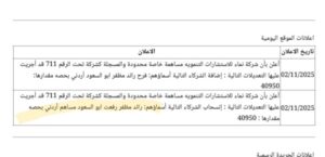وأظهرت الإعلانات المنشورة في الجريدة الرسمية بتاريخ 2 نوفمبر تعديلات على سجل الشركة، شملت انسحاب الوزير أبو السعود كمساهم، إلى جانب تغييرات أخرى في إدارة الشركة.