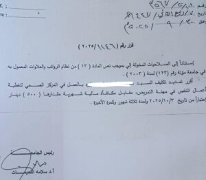 وبحسب ما أفاد به ناشطون، فإن الشخص المعني يعمل منذ نحو أربعة أعوام في الجامعة بوظيفة ممرض، ويتقاضى راتبًا شهريًا يُقدّر بـ500 دينار، رغم كونه متقاعدًا ومتجاوزًا سن الستين.